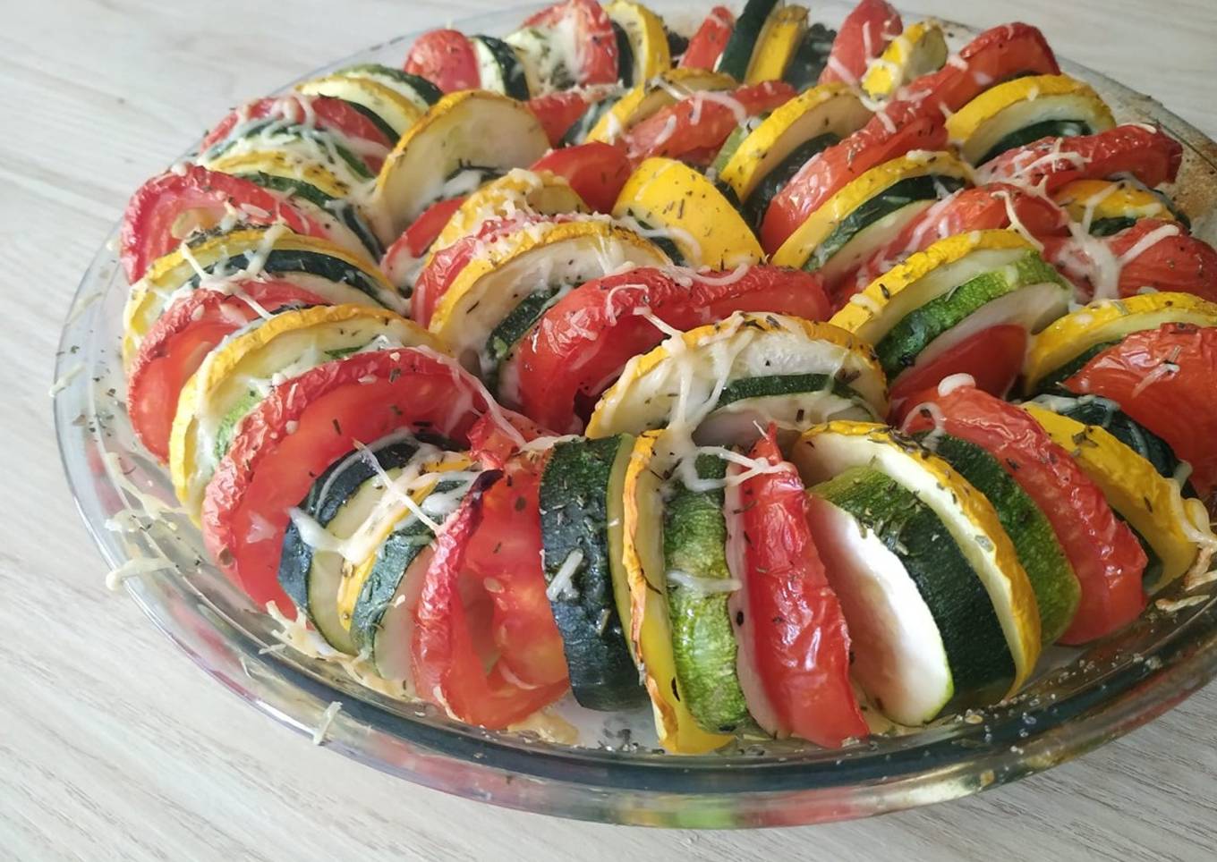 - Disposez les légumes dans le plat en alternant les légumes selon vos envies