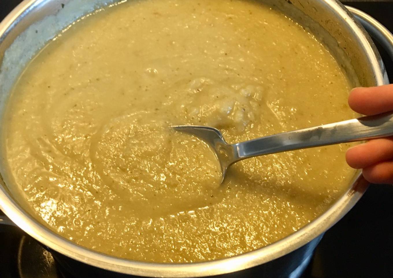 Potage aux céleri-rave, panais, courgette et haricots mungo
