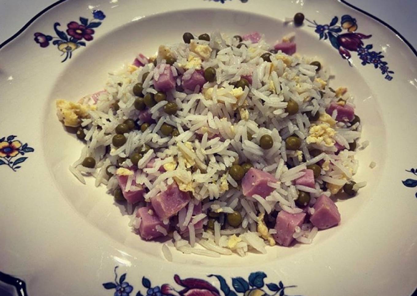 Dans une poêle, faites chauffer de l’huile, ajoutez le riz cuit, l'omelette, les petits pois et les cubes de jambon puis laissez cuire 5 min en mélangeant. Assaisonnez et servir chaud et bon appétit à vous 🥰