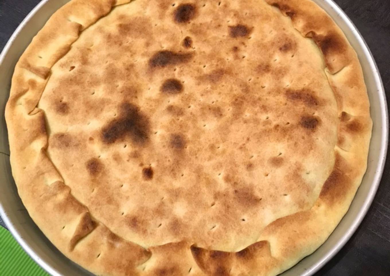 - Prendre la 2ème boule faire comme la première et la déposer sur le dessus. Couper le excédent de sorte a ce qu il ne reste qu un disque. Faire chevaucher les 2 cm extérieur en les rabattants sur le disque.percez la pâte, badigeonnez la d huile d olive et au four préchauffé à 180 pour 30 mn. Les 5 dernières minutes placez la tourte sous le grill pour la colorée sans la lâcher des yeux car ça va aller vite !!!! Sortez la enrobez la dans un torchon propre laissez tiédir