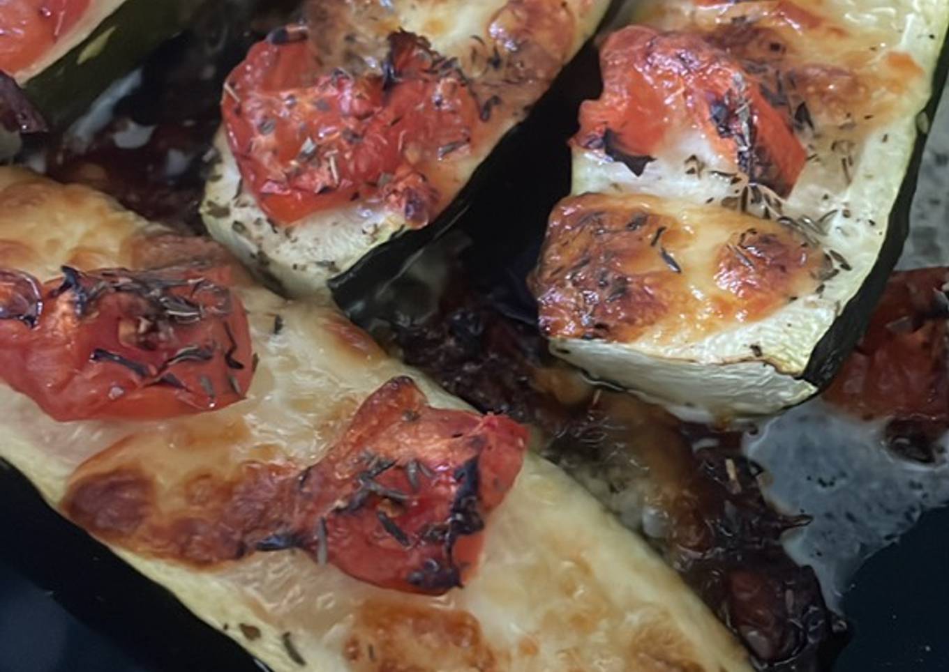 - Couper les courgettes dans la longueur. Les disposer dans un plat allant au four. Déposer sur chaque moitié de courgette, un morceaux de tomate et de mozzarella. Ajouter du thym, de l’origan, saler et poivrer.